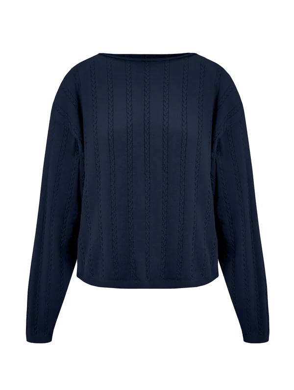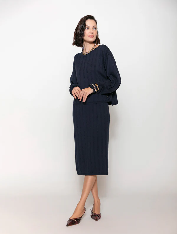 BLUSA EM ALGODÃO COM TECIMENTO EM TRANÇAS, GOLA CANOA E MANGAS DE CAVA QUADRADA BIAMAR – MEIA NOITE