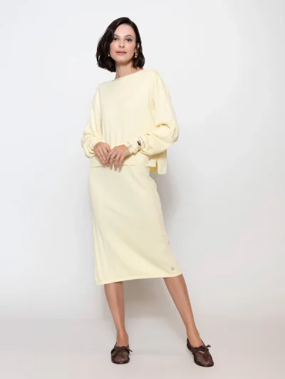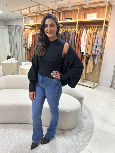 A blusa Biamar com efeito de padronagem geométrica destaca o cuidado e a técnica presentes no desenvolvimento do tricô. O desenho geométrico surge a partir do próprio tecimento, criando um visual rico em textura e profundidade sem necessidade de estampas. A cava raglan proporciona ajuste confortável e liberdade de movimento, valorizando o caimento da peça no corpo. Versátil e contemporânea, é ideal para composições que unem elegância, conforto e informação de moda no dia a dia.