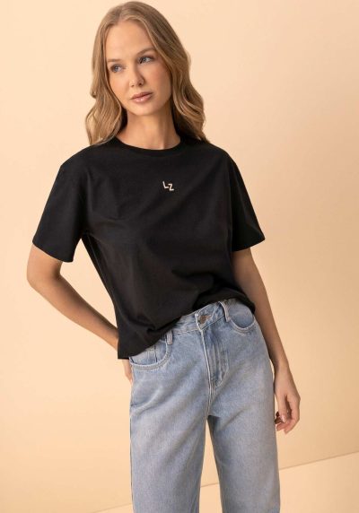 A blusa T-shirt básica combina o detalhe sutil do bordado exclusivo com a maciez da malha penteada, criando um visual cheio de charme. Aposte em calça jeans de cintura alta e tênis brancos para um look versátil e moderno.
