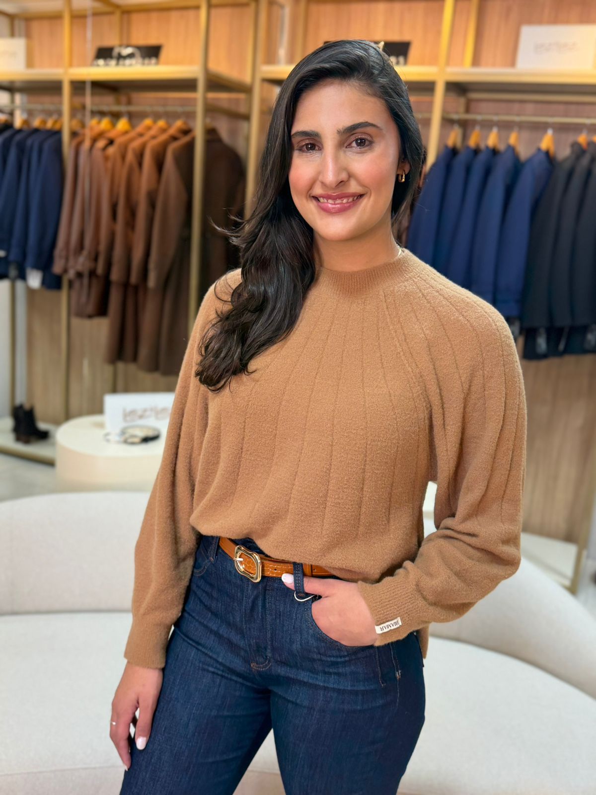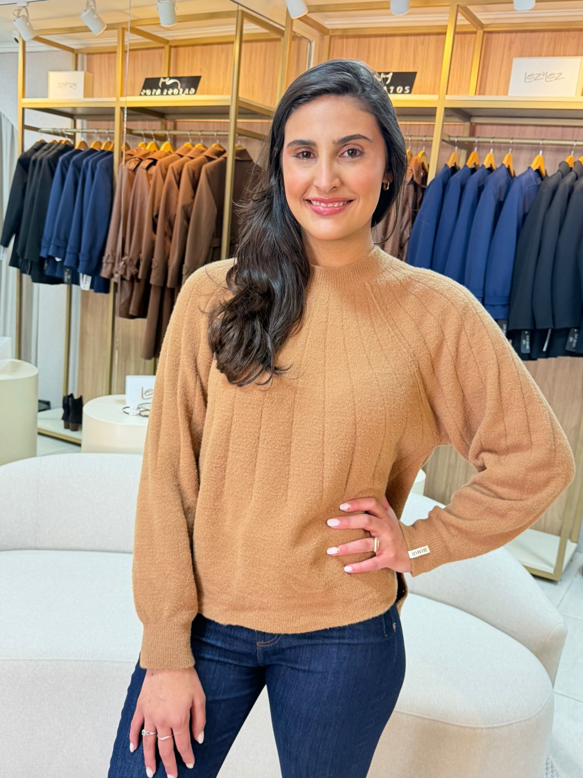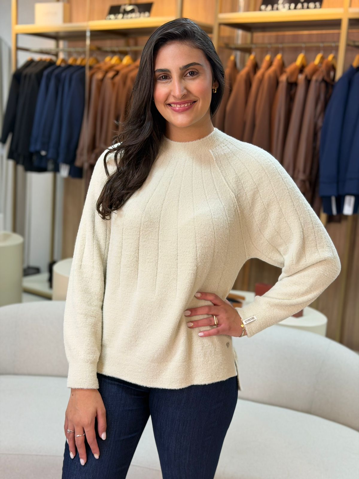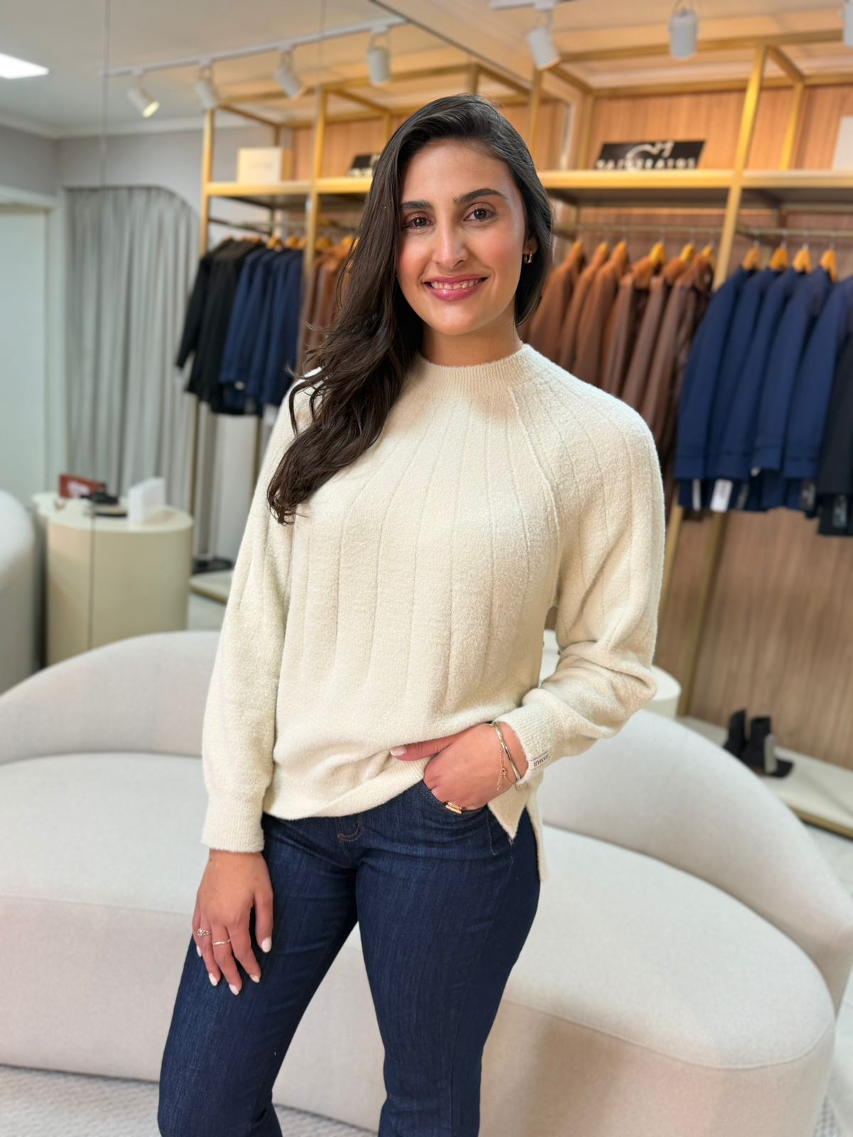 A Blusa Biamar Canelada em Fio Pluma Mullet é a escolha perfeita para quem busca combinar elegância, conforto e um toque de modernidade em seu guarda-roupa.
