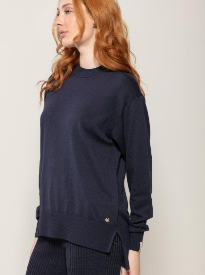 Blusa de cava morcego em fio pluma exclusivo Biamar, com padronagem geométrica desenvolvida pelo próprio tecimento. Possui caimento amplo, toque extremamente macio e visual contemporâneo, ideal para produções confortáveis e sofisticadas.