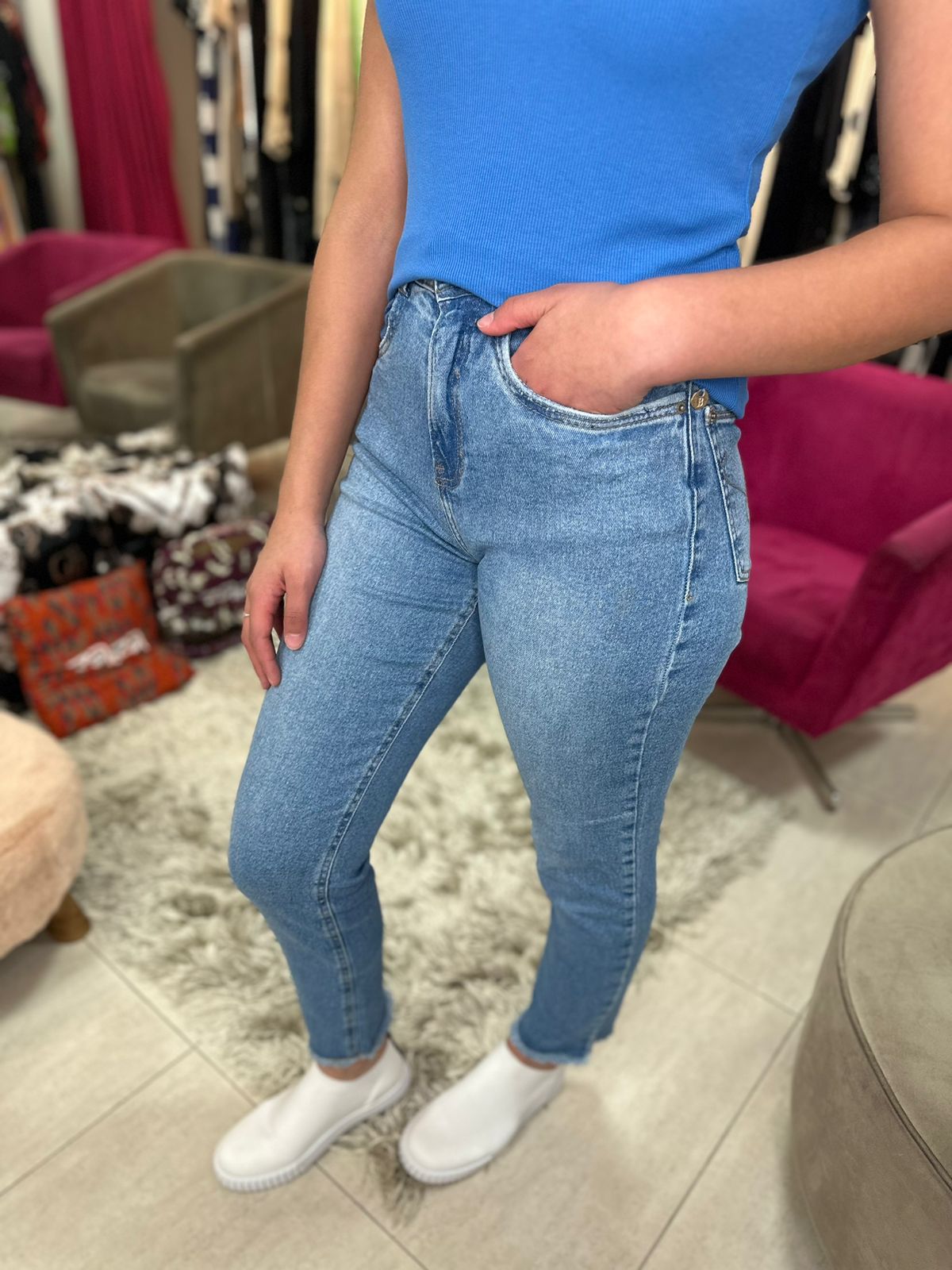 A jaqueta de mangas longas surge em jeans sem elasticidade, traduzindo o estilo autêntico e duradouro do denim. Com bolsos frontais e fechamento por botões, a peça reafirma sua posição de ícone no guarda-roupa feminino. Sempre relevante!