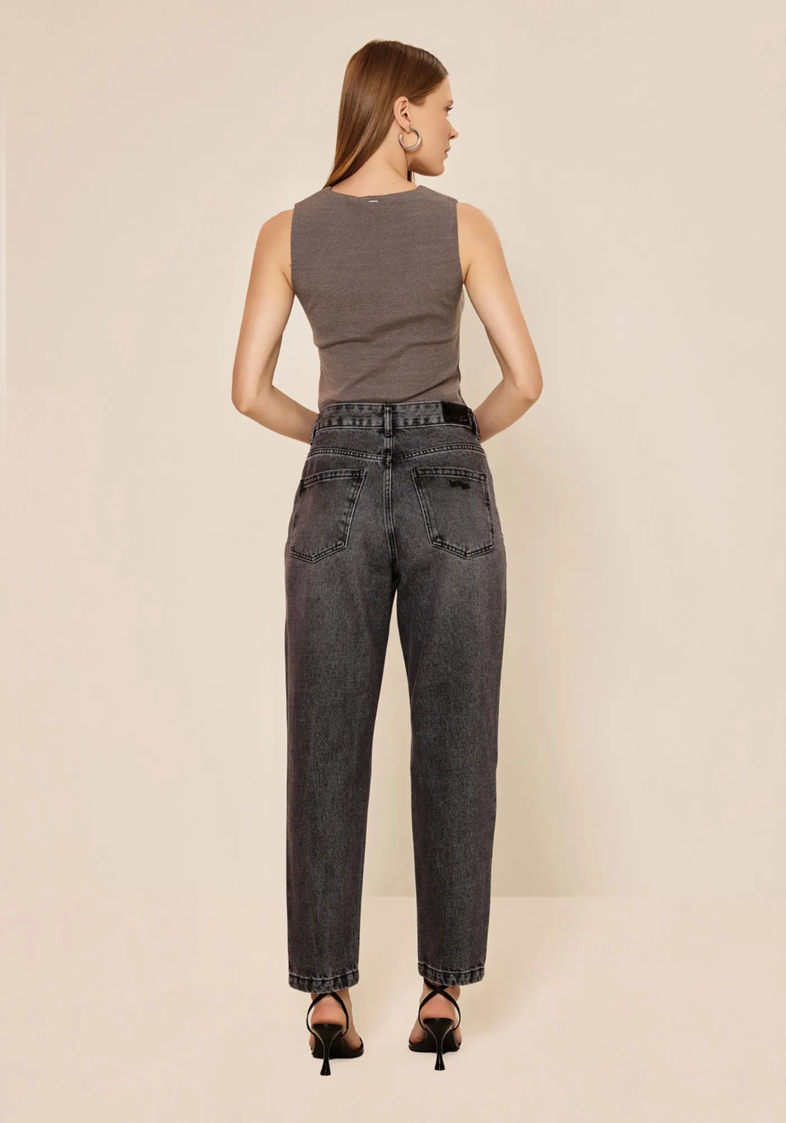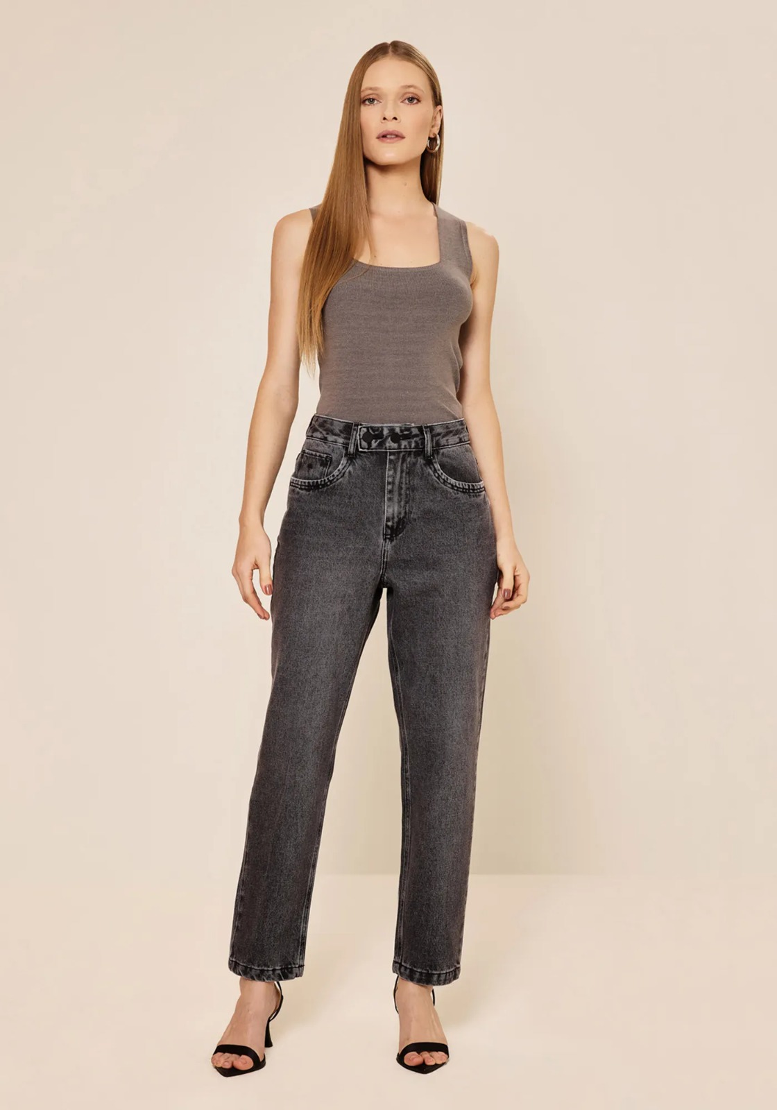 Graças à lavanderia em tom curinga, a calça mom jeans entrega versatilidade. Seu corte mais amplo no quadril, que se mantém confortável até as pernas, garante personalidade para produções modernas e nada óbvias.