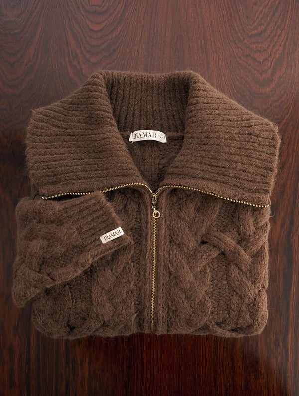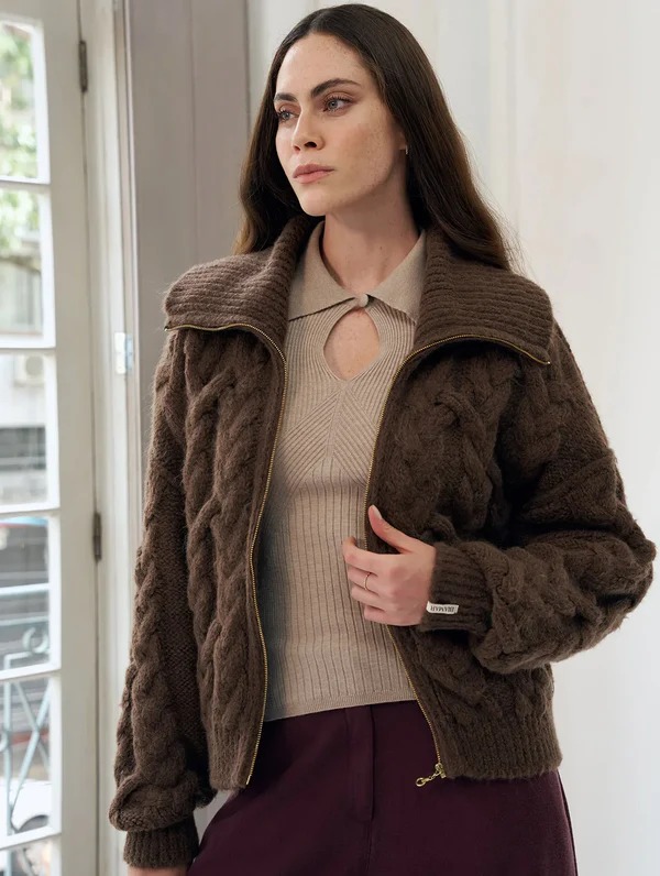 Casaco em ponto relevo com zíper Biamar, uma peça marcante que une textura, aconchego e elegância. O trabalho em relevo valoriza o visual e traz sofisticação, enquanto o zíper frontal adiciona praticidade ao dia a dia.