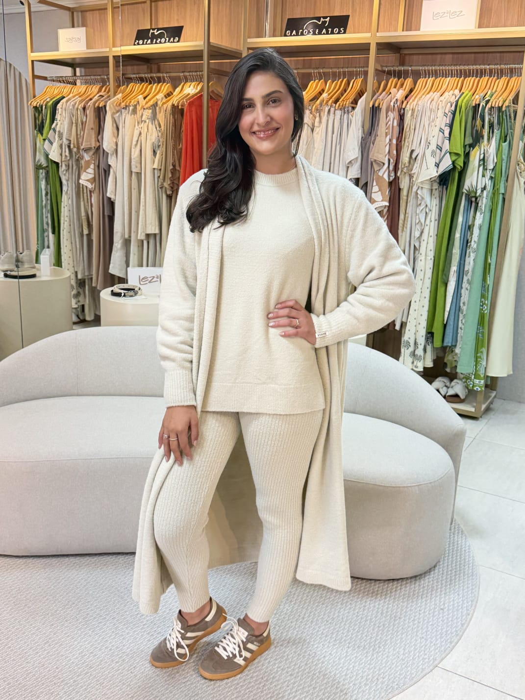 Casaco em ponto relevo com zíper Biamar, uma peça marcante que une textura, aconchego e elegância. O trabalho em relevo valoriza o visual e traz sofisticação, enquanto o zíper frontal adiciona praticidade ao dia a dia.