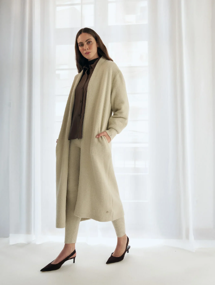 Casaco midi confeccionado em fio pluma exclusivo Biamar, com toque macio e excelente conforto térmico. O comprimento midi traz elegância à silhueta, enquanto os bolsos embutidos garantem praticidade sem interferir no design clean e sofisticado da peça.