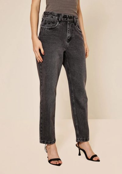 Graças à lavanderia em tom curinga, a calça mom jeans entrega versatilidade. Seu corte mais amplo no quadril, que se mantém confortável até as pernas, garante personalidade para produções modernas e nada óbvias.