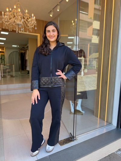 O grande destaque fica por conta do detalhe em matelassê na barra, no capuz e nos punhos, que traz um toque moderno e sofisticado à peça, elevando qualquer look básico.