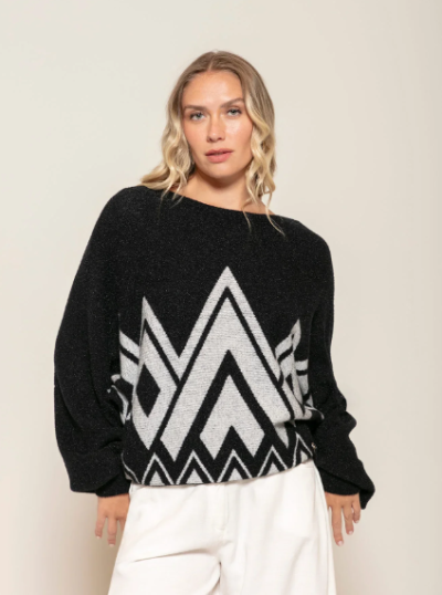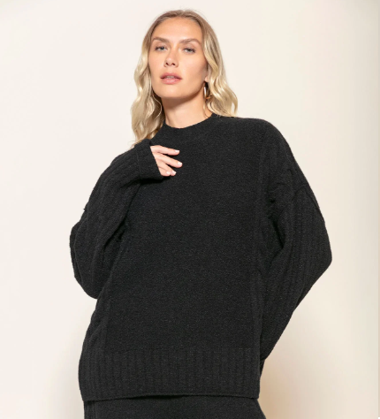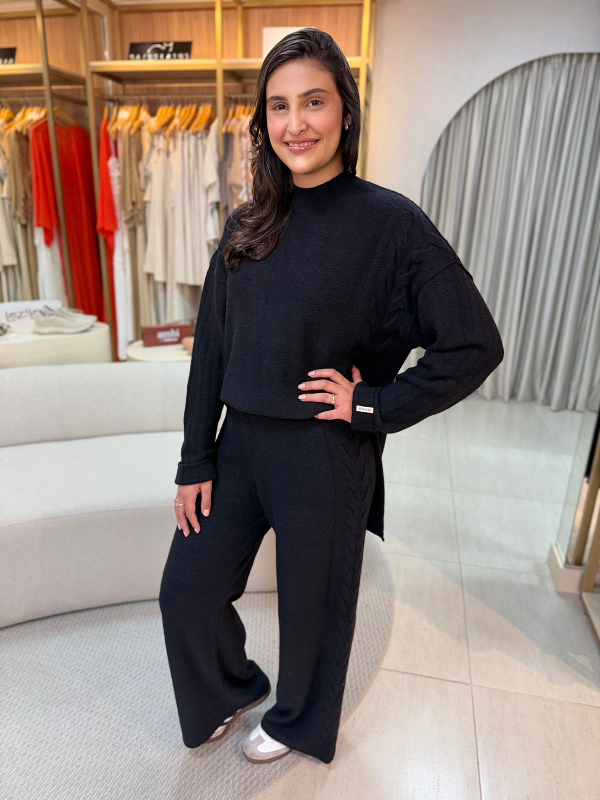 MALHA ALONGADA COM DETALHE EM TRANÇA E CANELADO PRETO – BIAMAR