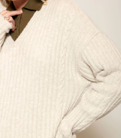 Blusa canelada com delicada trança aplicada nas laterais, que adiciona textura e sofisticação ao visual. O decote em V e as mangas longas completam a peça com elegância e conforto.
