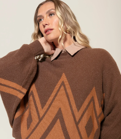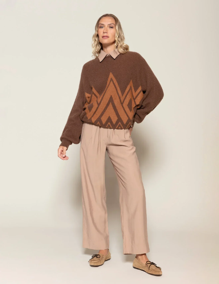 A blusa Biamar com efeito de padronagem geométrica destaca o cuidado e a técnica presentes no desenvolvimento do tricô. O desenho geométrico surge a partir do próprio tecimento, criando um visual rico em textura e profundidade sem necessidade de estampas. A cava raglan proporciona ajuste confortável e liberdade de movimento, valorizando o caimento da peça no corpo. Versátil e contemporânea, é ideal para composições que unem elegância, conforto e informação de moda no dia a dia.