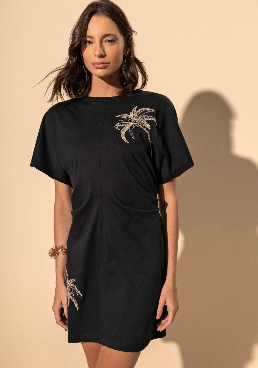 Com drapeados laterais que definem as curvas e bordados que remetem a um estilo handmade, este vestido de mangas curtas promete renovar seu visual. A malha macia com fios penteados traz suavidade e conforto absoluto para o seu dia a dia.