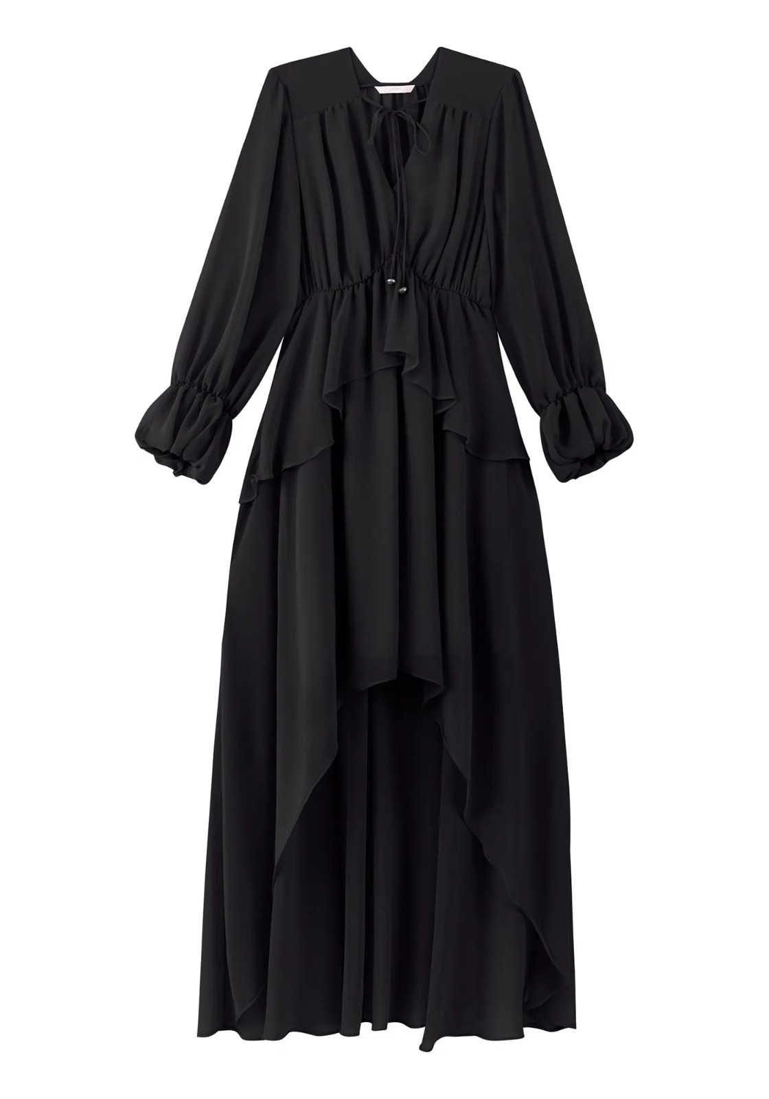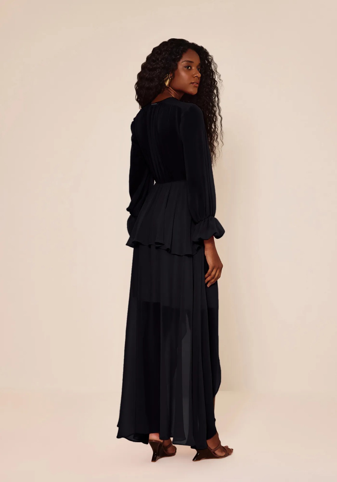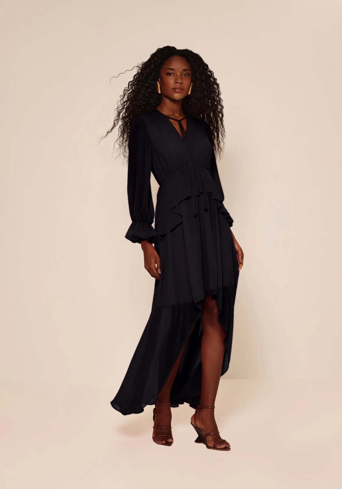 O tecido leve com transparência transforma o vestido longo Lez a Lez em uma peça naturalmente sofisticada. A barra assimétrica completa a proposta com fluidez marcante e um toque de modernidade. Aposta certeira para se destacar.